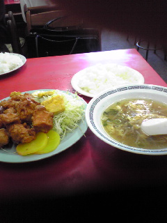 しばらくすると唐揚げと白ごはんが・・・