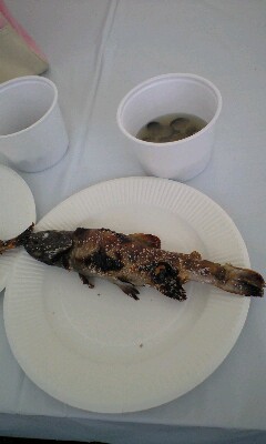」を焼き終えたとこで20cm弱ある立派なビワマスの塩焼きを美味しく頂ました。